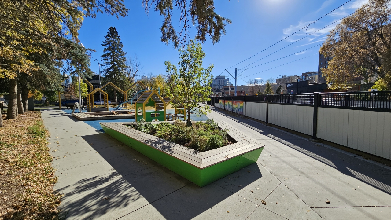 Trois petits parcs sont reliés entre eux le long du corridor par des programmes complémentaires, des récits et un vocabulaire de conception commun et dynamique tiré de la culture vernaculaire distincte de la communauté. À l'extrémité Bow du corridor, le Bow Landing Park combine des espaces de rassemblement avec des jardins communautaires et un skate-park. Harvest Park offre un lieu de rencontre au milieu du corridor avec des barbecues, des tables de récolte, des tables de ping-pong et un terrain de pétanque. À l'extrémité de Bluff, Play Park est équipé d'un bac à sable, d'une structure de jeu, d'un coffre à jouets et de minimaisons pour les jeunes familles de la communauté.