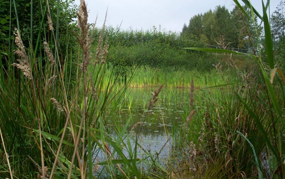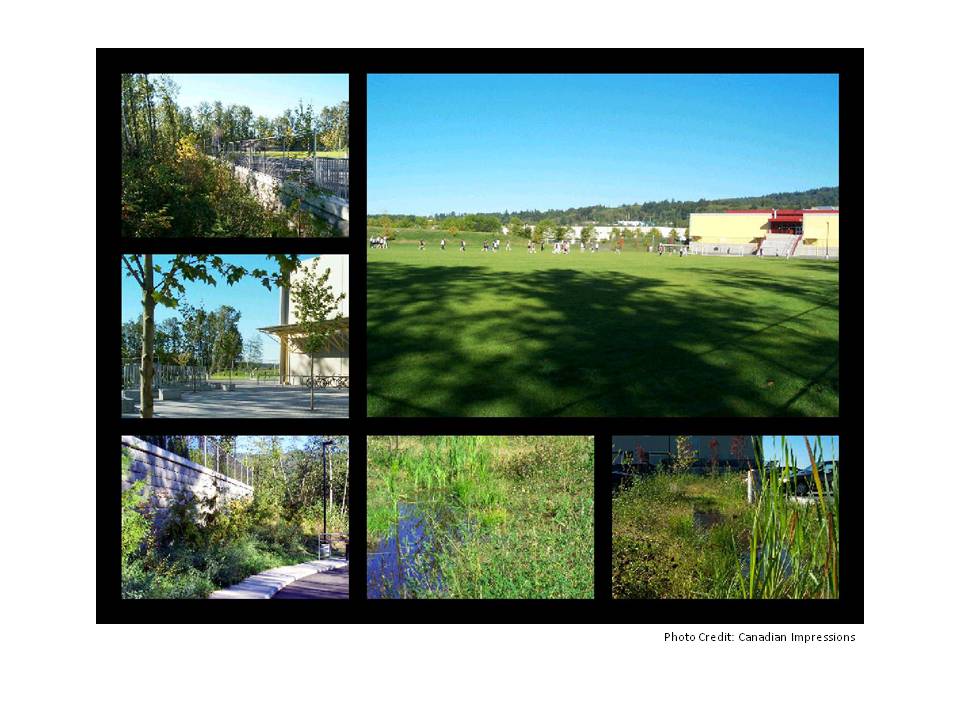 Intégrer une école à un environnement sensible au pied du mont Burnaby, non loin d’un cours d’eau poissonneux, Stoney Creek, est rapidement devenu un enjeu primordial autour de cette construction et de ses aires connexes. Les eaux de ruissellement des stationnements, des terrains de jeux et des bâtiments passent par des rigoles de drainage biologique et par des bassins d’eau pluviale avant d’aller alimenter Stoney Creek. Sous les terrains de jeux s’étend un système géothermique conçu pour maintenir une température agréable à l’intérieur de l’école l’année durant. Une majorité de plantes indigènes entourent l’établissement et poussent dans les bassins et le parc – un choix conçu pour réduire au minimum l’entretien de base et améliorer l’habitat de la faune. Les élèves interagissent avec les lieux et l’environnement immédiat dans le cadre du programme d’études.