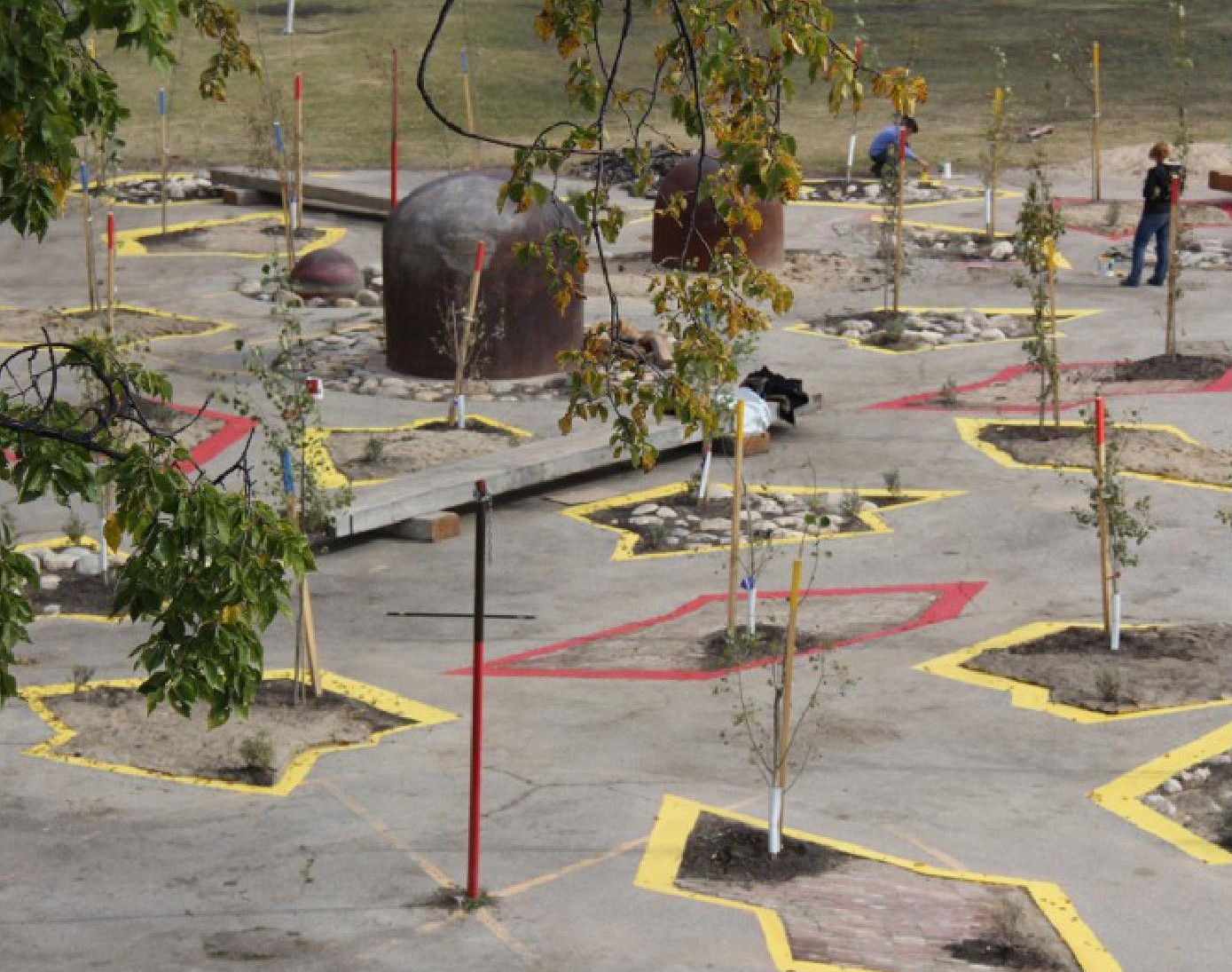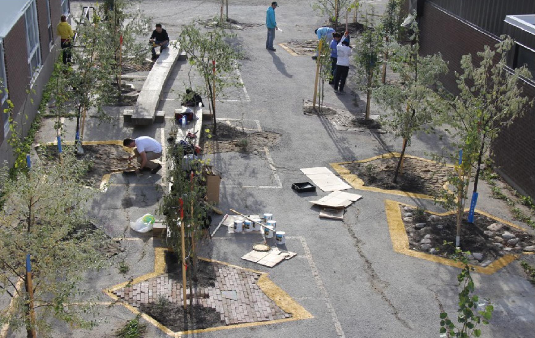 Folly Forest montre l’immense potentiel de l’architecture de paysage en tant qu’outil de transformation spatiale et sociétale. Situé dans un district défavorisé de Winnipeg, Strathcona School a été transformé comme par magie en perforant de l’asphalte vieux de 50 ans. Ce projet montre comment une simple mesure peut entraîner des bienfaits écologiques et esthétiques qui peuvent devenir un élément structurant d’un plan. Les matériaux recyclés et leur transformation dans un nouveau contexte en sont la clé. Folly Forest montre qu’il n’est pas nécessaire de disposer de millions de dollars ni de vastes ressources. Ainsi, de simples ouvertures étoilées créent des espaces libres et forment des parcelles d’écologie et de biodiversité au quotidien.