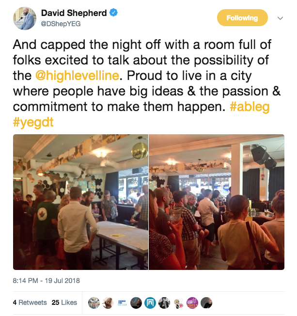 Reliant les deux pôles culturels et les huit quartiers centraux d’Edmonton, High Level Line est un sentier réinventé qui emprunte un corridor ferroviaire sous-utilisé traversant le cœur de la ville. Cette proposition spontanée de jeunes professionnels passionnés a inspiré une discussion à l’échelle de la ville et lui a donné l’élan nécessaire pour le concrétiser.