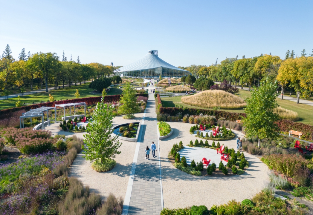 La Feuille du parc Assiniboine est une attraction de classe mondiale qui célèbre le lien universel entre les gens et la nature par le biais de la diversité culturelle et botanique. Fruit d'une collaboration visionnaire de dix ans menés par des architectes paysagistes des deux côtés du projet, les dix paysages extérieurs et les quatre biomes intérieurs de La Feuille incarnent les communautés multiculturelles du Canada et leurs histoires végétales.