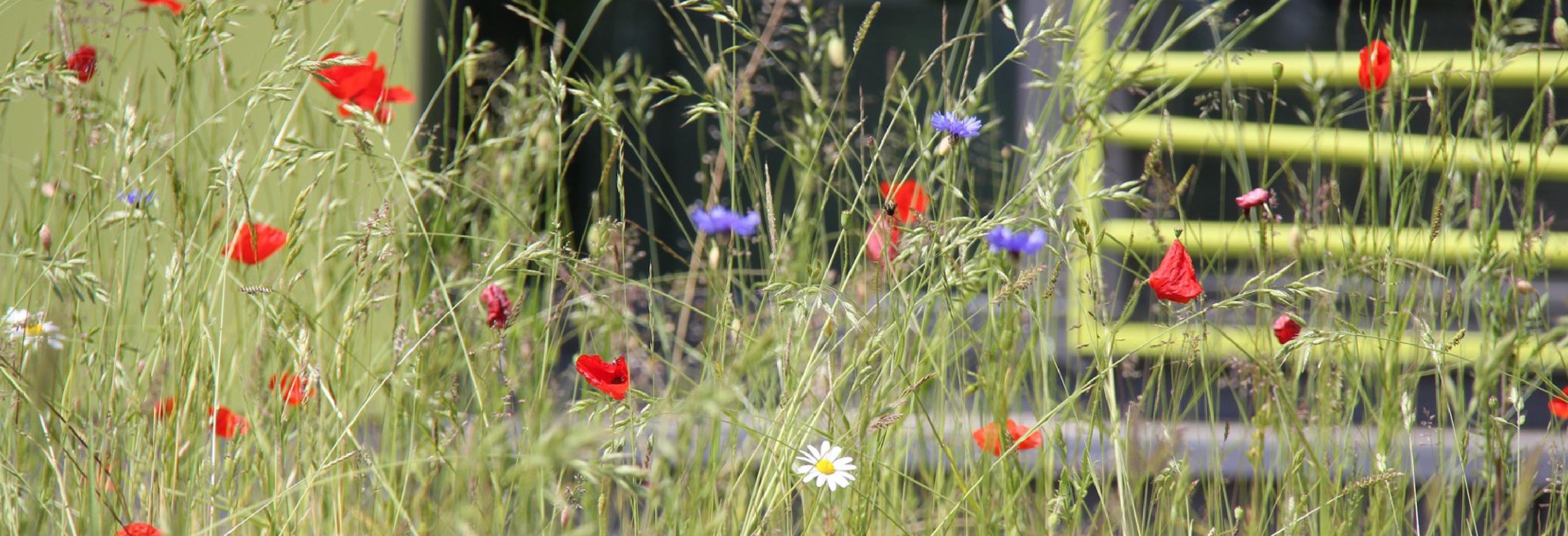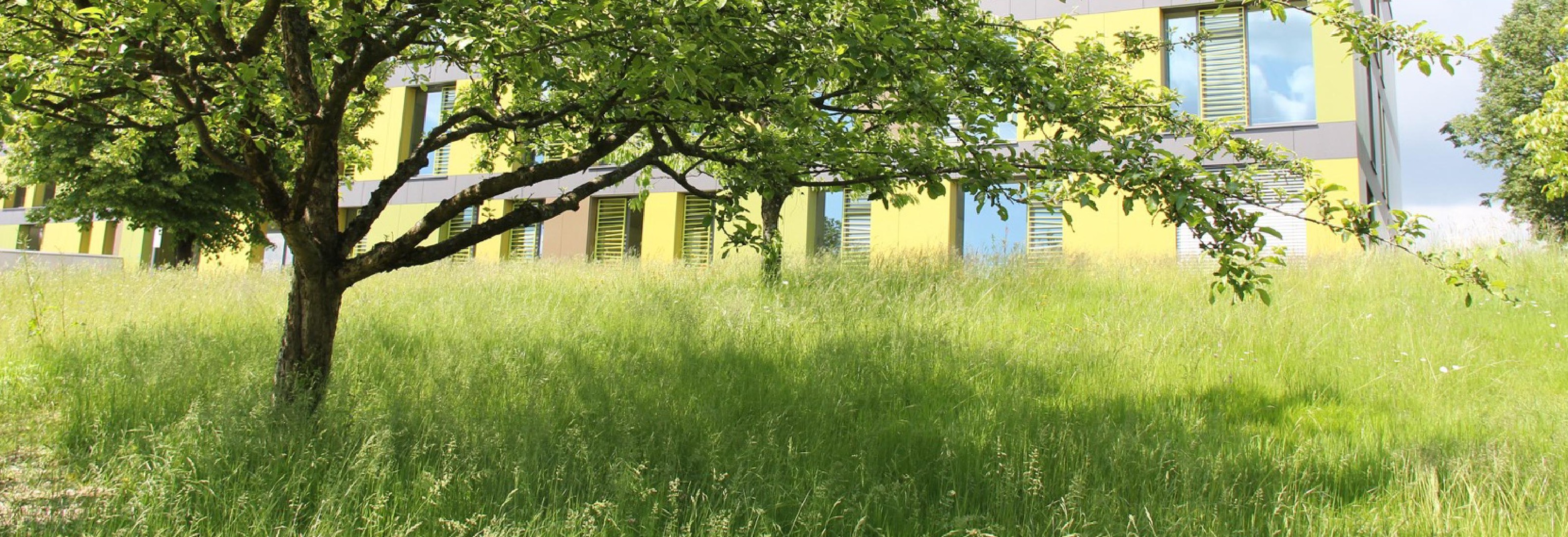 Ce projet a été motivé par la rénovation et l’expansion d’une école secondaire d’État construite en 1972. Les arbustes et buissons plantés autour du bâtiment dans les années 1970 parvenus à maturité s’étaient transformés en maquis cachant la lumière, source d’incertitude et de désorientation. L’idée des « prés ensoleillés » répondait à ce contexte particulier. Le jeu délicat de lumière, de fleurs et d’insectes transforme les prés en expériences spatiales remarquables. Ils offrent des endroits agréables propices aux apprentissages tactiles par l’expérience qui accordent la priorité aux enfants et à la nature. La mise en œuvre échelonnée sur une période de quatre ans a été effectuée sans perturber les activités scolaires habituelles.