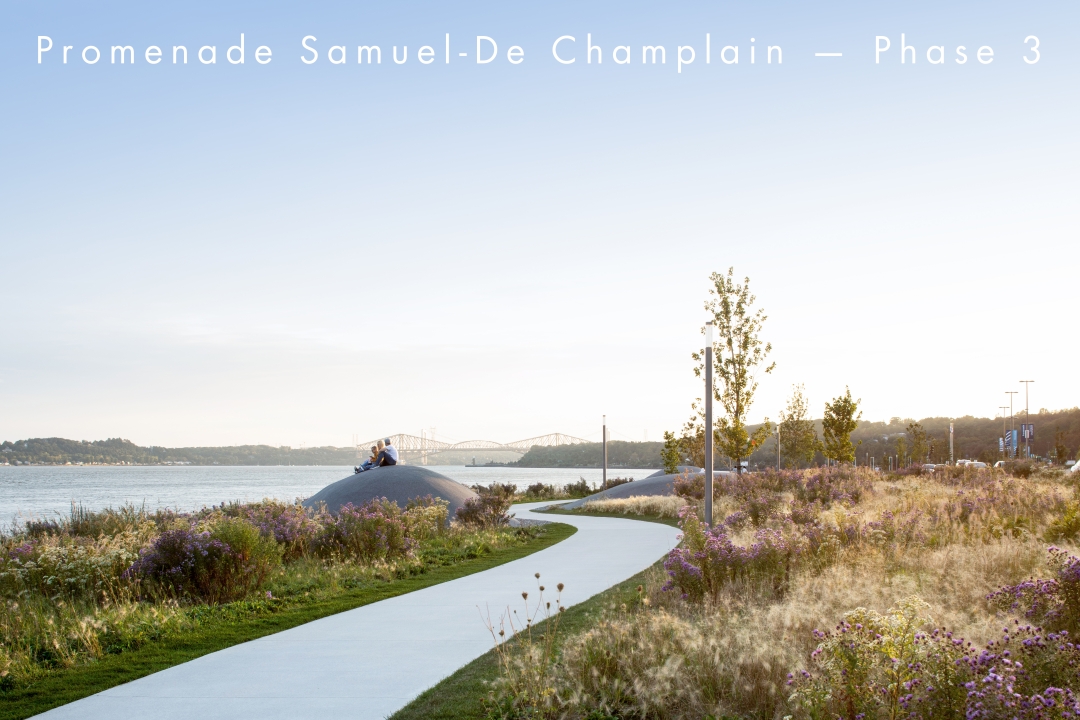 La mission et le principe directeur de la phase 3 de la promenade Samuel-de Champlain étaient de rendre le fleuve Saint-Laurent à la population québécoise. La transformation de l'autoroute en boulevard urbain et le déplacement de la voie ferrée ont permis de libérer de précieux mètres carrés, propices à la création d'un vaste parc récréatif et culturel, favorisant la mobilité active sur un tronçon de 2,5 kilomètres en bordure du fleuve. Privilégiant l'audace de la simplicité, le projet incarne un sentiment de permanence, créant une ambiance où l'usager se sent privilégié, mettant en valeur un paysage côtier patrimonial. En outre, le projet a permis de restaurer la biodiversité dans cette zone négligée en plantant 1 055 arbres, 28 950 arbustes et 117 000 plantes herbacées indigènes.