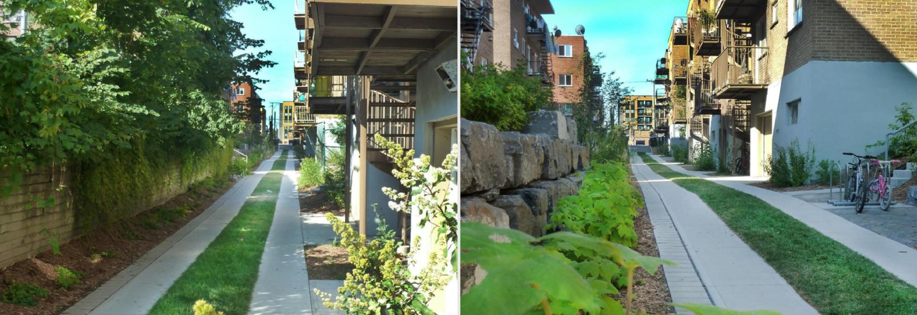 Un avant-après saisissant qui fait la promotion de l’étendue de notre champ de pratique en aménagement urbain et en gestion des eaux de ruissellement, auprès du grand public et des partenaires concernés.