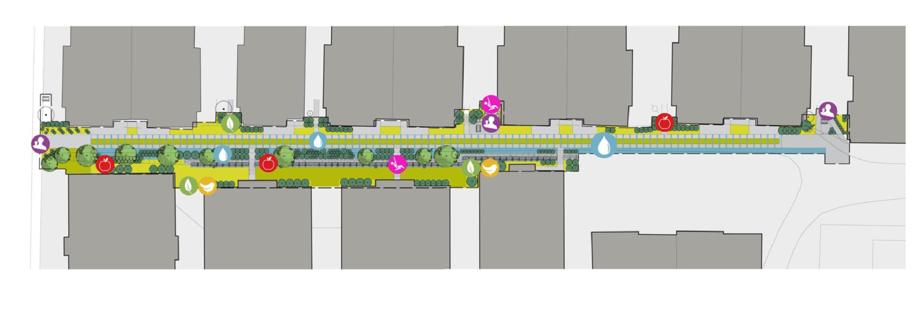 L’architecte paysagiste a su utiliser ses connaissances et un éventail d’initiatives pour transformer ce site aux nombreuses contraintes, boudé par plusieurs professionnels, et pour relever les grands défis qu’il apporte sur le plan du budget, de la gestion de l’eau et du contexte urbain en milieu défavorisé.
