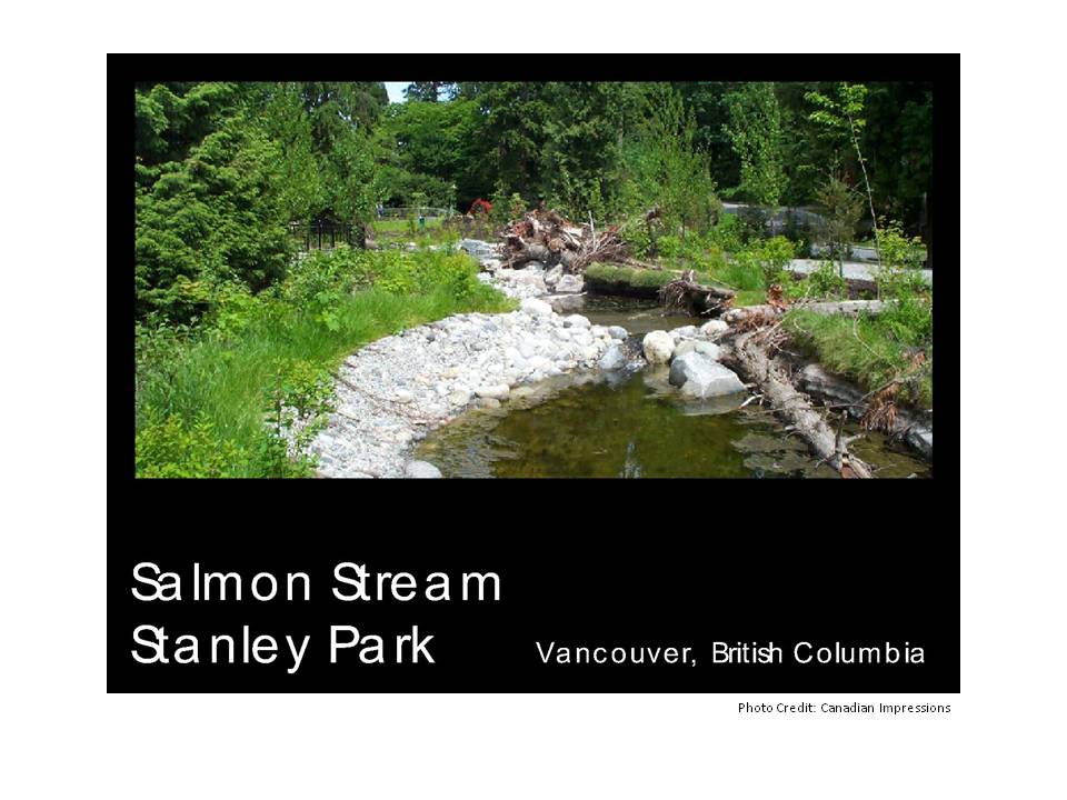 PWL a dirigé une équipe multidisciplinaire pour concevoir le ruisseau à saumon du parc Stanley. Des aires de stationnement du parc ont été récupérées pour créer un nouvel habitat de frai de saumon à vocation éducative en Colombie-Britannique. Les principaux éléments du projet comportent des activités d’interprétation et la récupération des eaux salées usées de l’Aquarium de Vancouver pour alimenter une section du ruisseau à saumon. La qualité de l’eau douce du ruisseau du parc a été améliorée en éliminant un réseau d’assainissement.