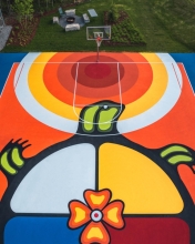 Le Sheguiandah First Nation Community Court est un projet novateur mené par la communauté et situé au cœur de la Première nation Sheguiandah sur l'île Manitoulin (Mnidoo Mnising). En tant qu'architecte paysagiste du projet, ERA Architects a collaboré avec l'artiste Anishnaabe Emily Kewageshing à la revitalisation d'un terrain de sport détérioré en un lieu dynamique avec du basket-ball, de la planche à roulettes, des sièges intégrés au paysage, une zone de feu, de l'éclairage et de nouvelles plantations indigènes. Le projet est le fruit d'un partenariat entre la Première nation Sheguiandah, NBA Canada, les Toronto Raptors, la Fondation MLSE, Ellis Don et les United Chiefs and Councils of Mnidoo Mnising, qui sont les principaux conseillers du projet. L'impact du court a été transformateur, offrant à la Première nation de Sheguiandah un lieu dynamique pour jouer, se réunir, jardiner et faire de l'exercice au cœur de sa communauté.