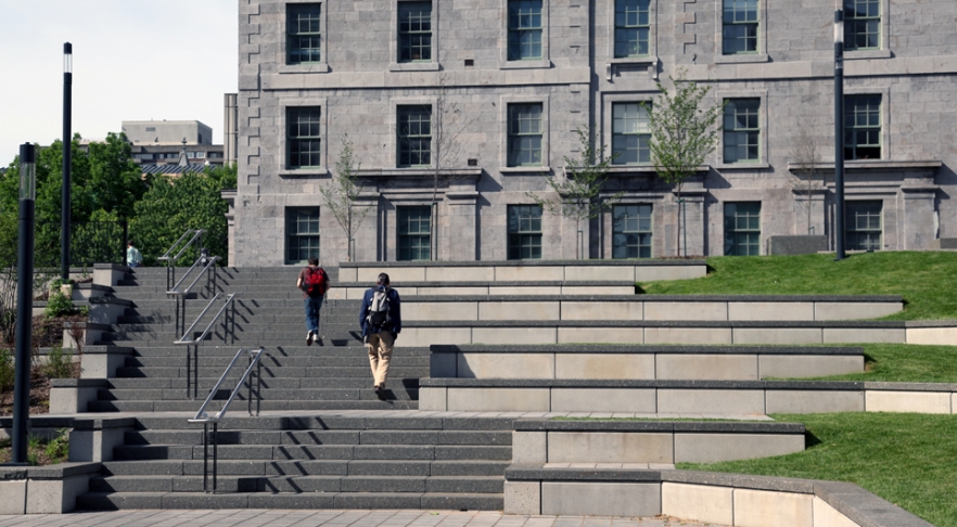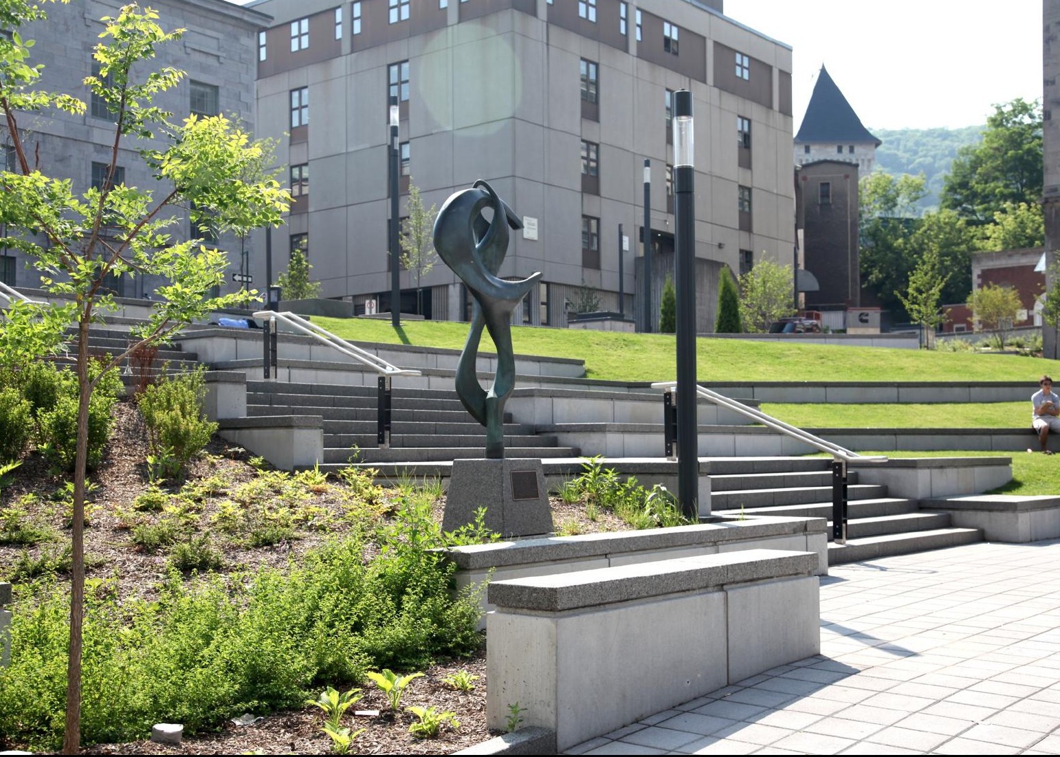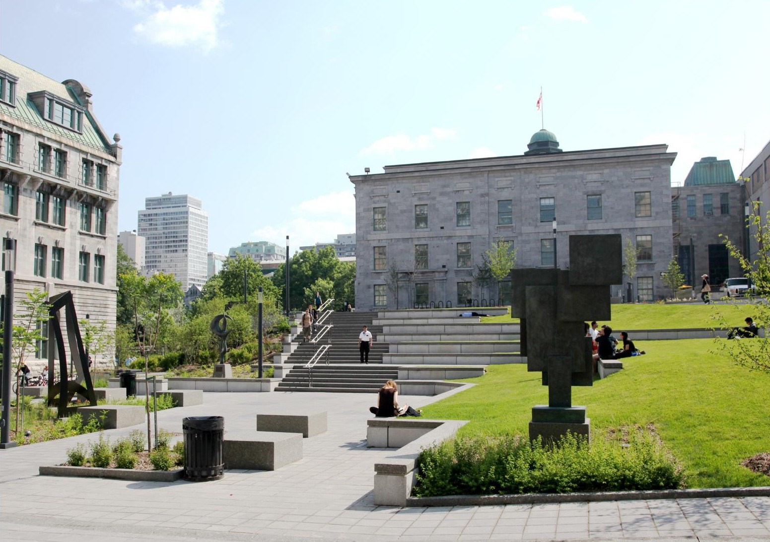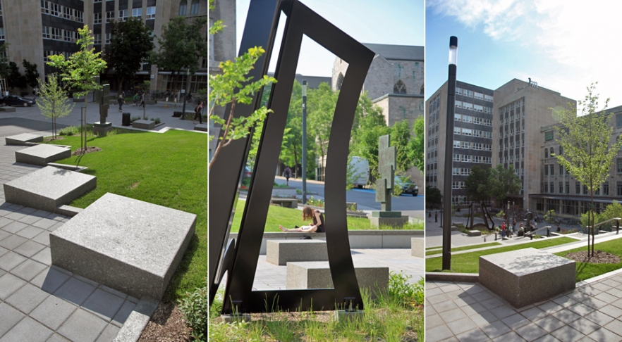 Le square James (ou Place James), situé avant le portail Milton, est l’un des nombreux espaces verts que l’on peut trouver au centre du campus de l’Université McGill. Il fallait à tout prix que le nouveau design de cette place mette en œuvre les politiques du plan de développement durable de l’Université. Il s’agissait notamment d’augmenter la couverture végétale et d’améliorer la sécurité des piétons. On a accordé une attention particulière à l’amélioration des voies piétonnières et à l’éclairage du site, ainsi qu’à la réduction de la présence des véhicules dans le périmètre de la place. On a veillé tout particulièrement aux besoins des personnes à mobilité réduite afin de leur fournir un espace tout aussi intéressant pour eux que pour la population jouissant d’une pleine mobilité sur le campus. On a, par ailleurs, intégré quatre œuvres d’art de la collection de l’Université à la conception du site.