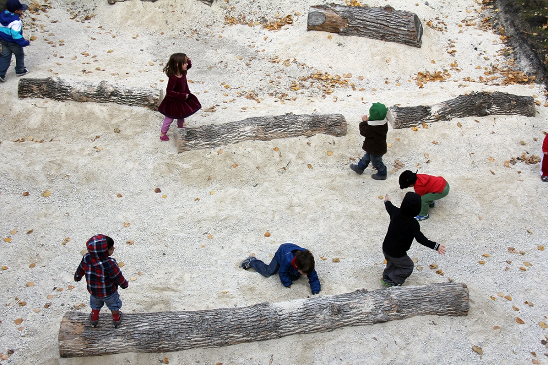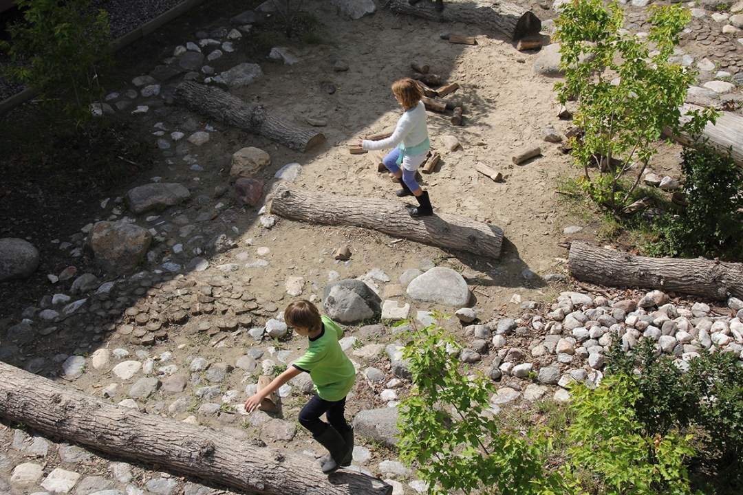 La transformation physique de l’aire de jeu extérieur de Montessori repose sur le concept de l’expérimentation et la créativité enfantines. Les matériaux et les espaces sont activés et désactivés par les enfants, fluctuant librement entre la permanence, le désordre et le sens du temporaire. La règle d’or est de trouver la beauté dans la spontanéité et l’imperfection.