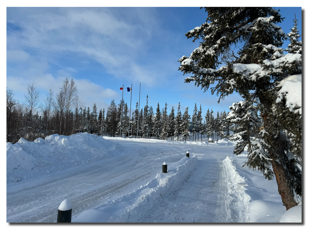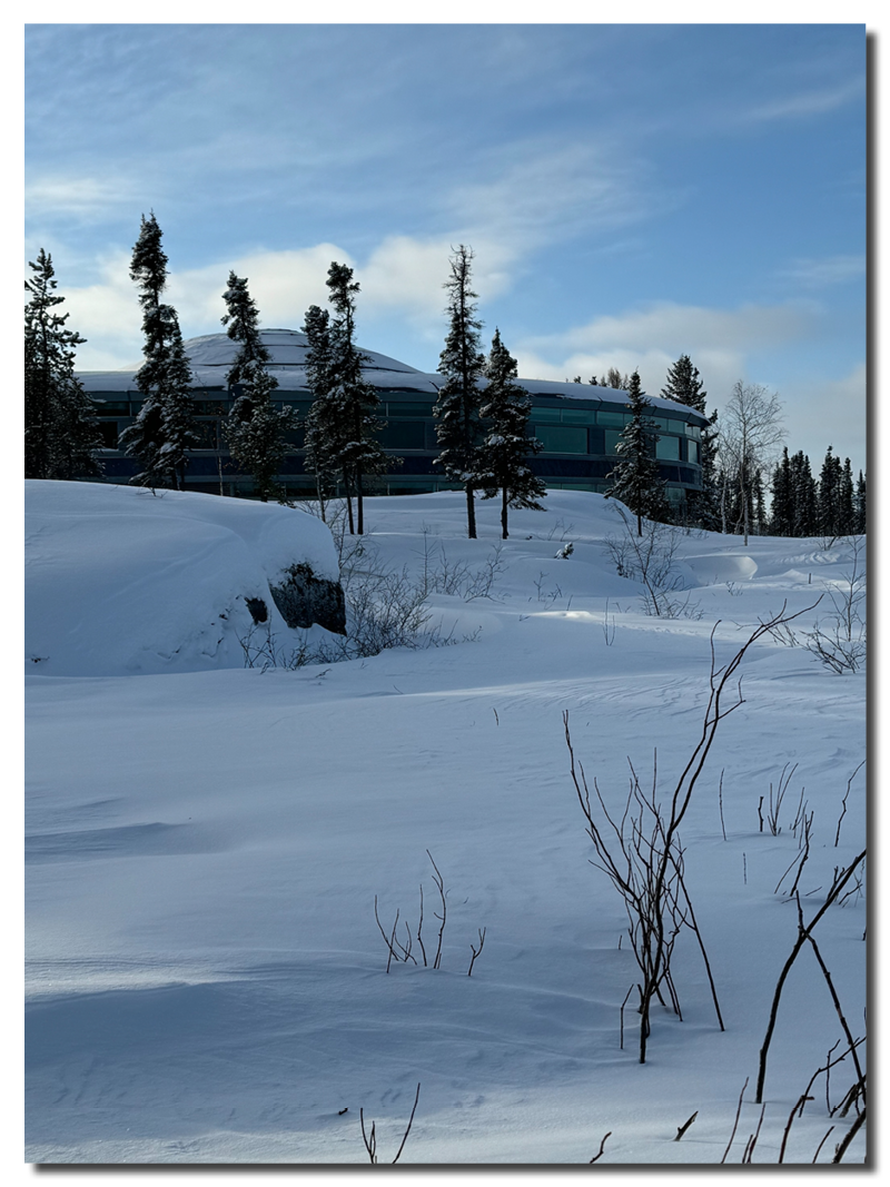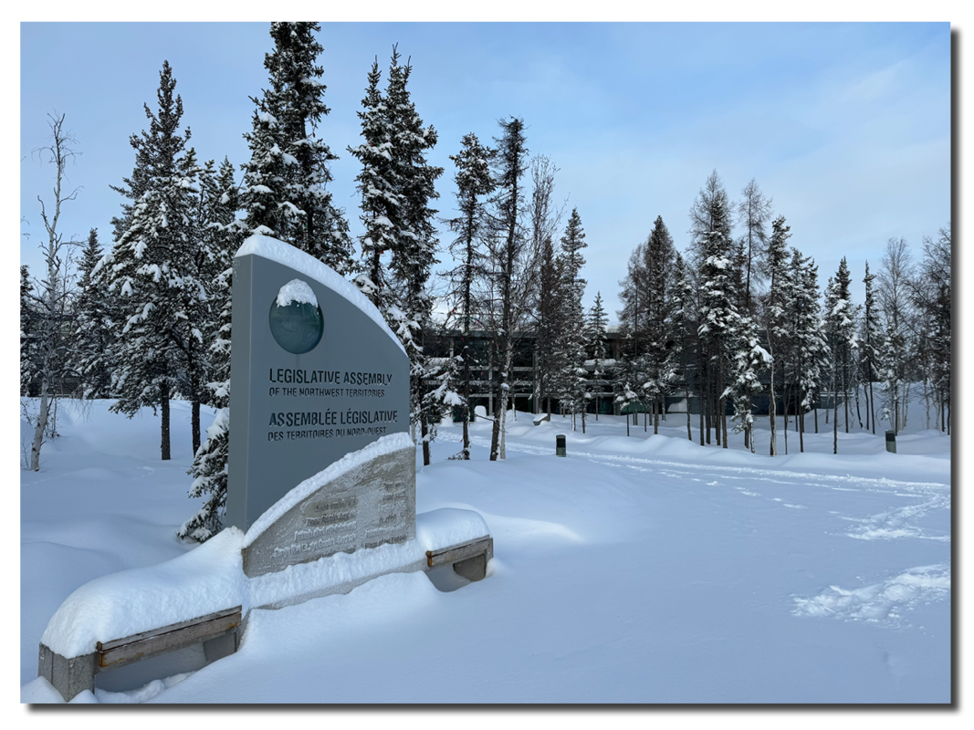 La coupole de l’édifice de l’Assemblée législative des Territoires du Nord-Ouest surplombe les affleurements rocheux, les épinettes noires et les mélèzes sur les rives du lac Frame à Yellowknife. Les douces courbes de l’édifice sculpté ponctuent élégamment le terrain accidenté. La circularité de l’Assemblée législative est un rappel tangible de la nature consensuelle de ce gouvernement.