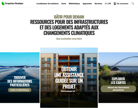 Face à l’escalade des enjeux liés au climat et au logement au Canada, les collectivités de tout le pays doivent pouvoir accéder facilement à des données fiables et à des informations sur le climat. Perspectives Climatiques est une plateforme en ligne conçue pour répondre à ce besoin. Elle offre aux municipalités une source centralisée où elles peuvent trouver les outils et les données dont elles ont besoin pour faire progresser les initiatives de logement et d’infrastructure sobres en carbone et résilientes aux changements climatiques au sein de leurs collectivités. La plateforme est conçue pour alléger le fardeau que représentent la collecte de données et la sélection d’outils, en fournissant et en concentrant les données et les outils les plus pertinents dont les professionnels ont besoin pour faire progresser les initiatives de logement et d’infrastructures sobres en carbone et résilientes aux changements climatiques sur leur territoire. Perspectives Climatiques est élaboré et diffusé activement dans le cadre d’un processus de collaboration et de consultation sur une période de cinq ans (2023-2028). De nouvelles caractéristiques et fonctionnalités continueront d’être ajoutées afin d’assurer notre mandat de soutien aux besoins des collectivités.