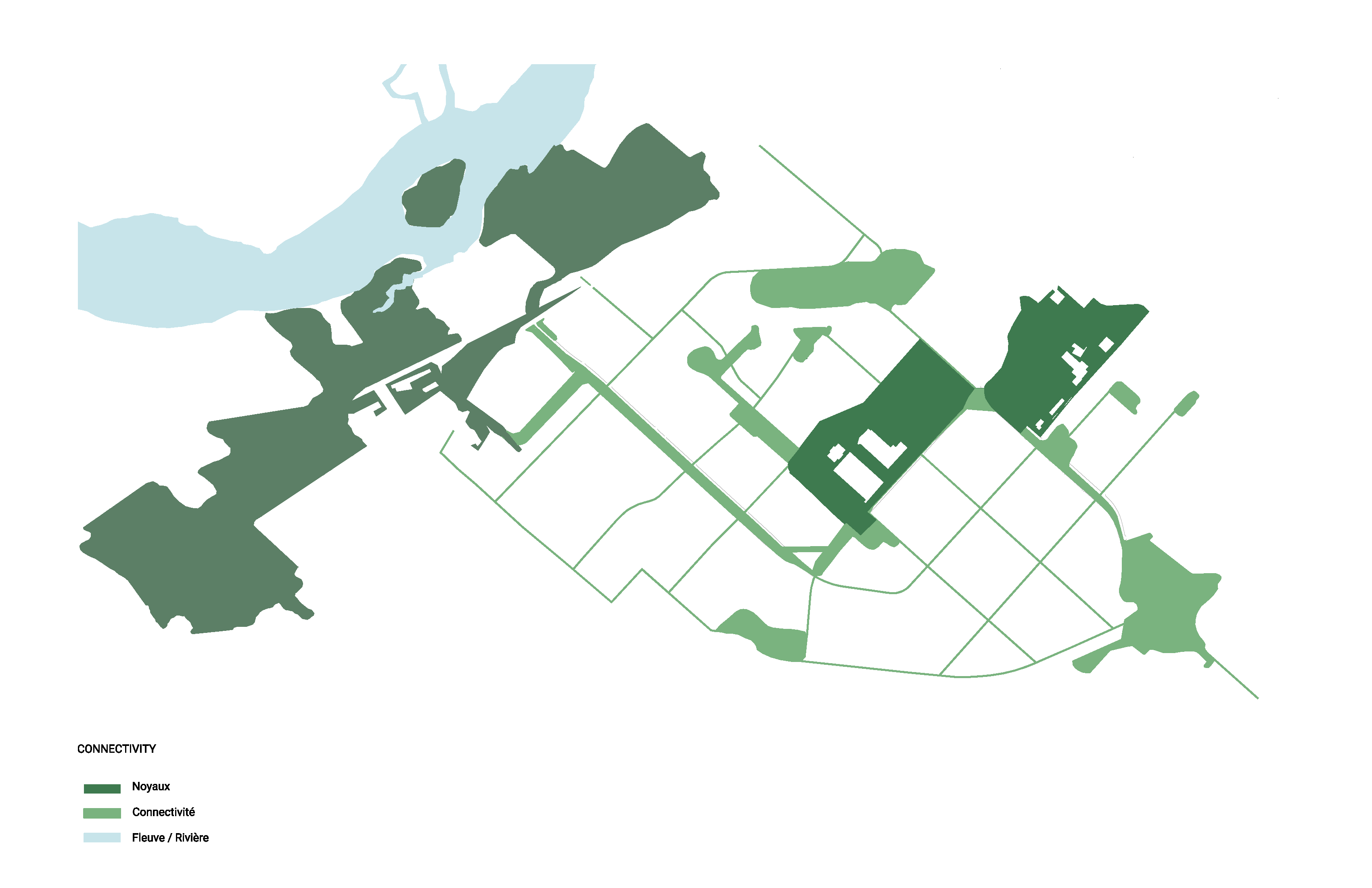 - Connectivité : un système secondaire d’infrastructures bleues et vertes et d’espaces arborés